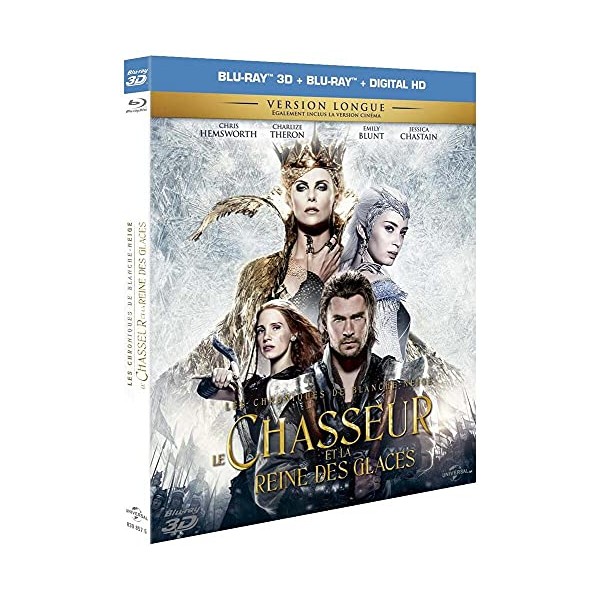 | Contient : - le Blu-ray 3D active du film en version cinéma (114') - le Blu-ray 2D du film en version longue (120') et version cinéma (114') - la copie digitale du film Pistes audio-descriptives disponibles uniquement sur la version cinéma Blu-ray 2D : Commentaire audio de Cédric Nicolas-Troyan sur la version cinéma (VOST) 4 scènes coupées avec commentaire audio optionnel (VOST) de Cédric Nicolas-Troyan (HD - 8'57" - VOST) Bêtisier (HD - 9'43" - VOST) "Vues d'hiver", making of en 5 parties (HD - VOST) : - "Deux reines et deux guerriers" : les rôles féminins interprétées par Emily Blunt, Jessica Chastain et Charlize Theron (7'22") - "À la rencontre des nains" : rencontre avec les acteurs (8'10") - "De la magie partout" : rencontre avec l'équipe des effets spéciaux (8'44") - "Vêtu pour tuer" : rencontre avec Colleen Atwood, la chef costumière (6'03") - "L'amour triomphe de tout" : tournage et rencontre avec les acteurs et talents du film (5'58")  |