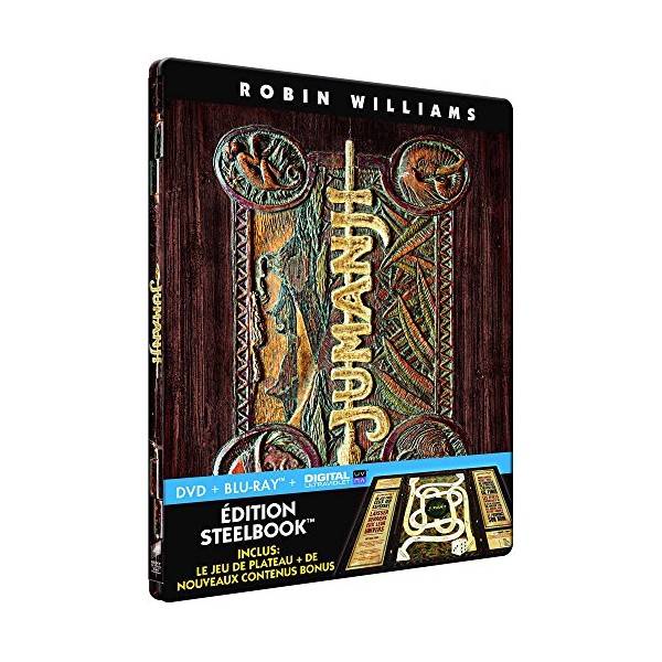 | Boîtier métal SteelBook Contient : - le Blu-ray du film - le DVD du film - la copie digitale du film au format UltraViolet - un jeu de plateau Jumanji Commentaire audio de l'équipe des effets spéciaux Livre animé de Jumanji lu par Chris Van Allsburg 3 featurettes sur l'envers du décor Comparaison de storyboards Livre extrême de la nature Galerie photos Épisodes de Jumanji : la série animée Bandes-annonces originales de la sortie en salles Scènes supprimées inédites Bêtisier avec Robin Williams et l'équipe Découvrez "Jumanji : Bienvenue dans la jungle" |