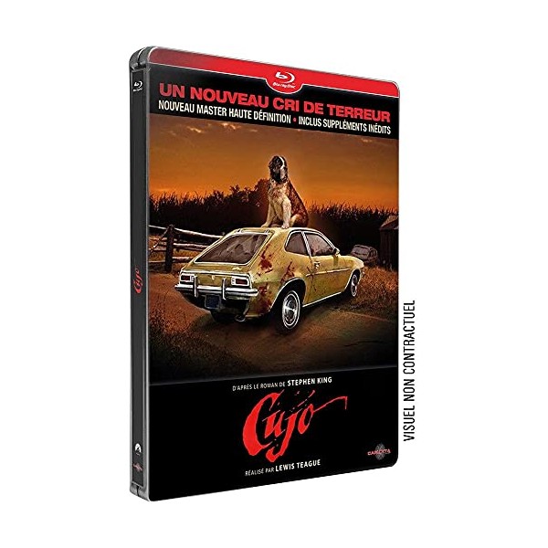 | Boîtier métal SteelBook Nouveau master restauré HD Nouveau mix 5.1 (VO) Commentaire audio de Lee Gambin (VOST) "Un vrai tour de force pour une femme" : souvenirs de tournage avec Dee Wallace (exclusivité Blu-ray, 2019, HD, 41'34", VOST) "Un compositeur ne peut pas rêver mieux" : entretien avec le compositeur Charles Bernstein (exclusivité Blu-ray, 2019, HD, 35'37", VOST) "Dans la tête du chien" : souvenirs de tournage avec Teresa Ann Miller, fille de Karl Lewis Miller, dresseur sur le film (exclusivité Blu-ray, 2019, HD, 28'14", VOST) "Dog Days : le making of de Cujo" écrit et réalisé par Laurent Bouzereau (2007, HD, 42'48", VOST) 2 spots TV (HD, 0'41", VOST) Bande-annonce originale (HD, 1'49", VOST) |