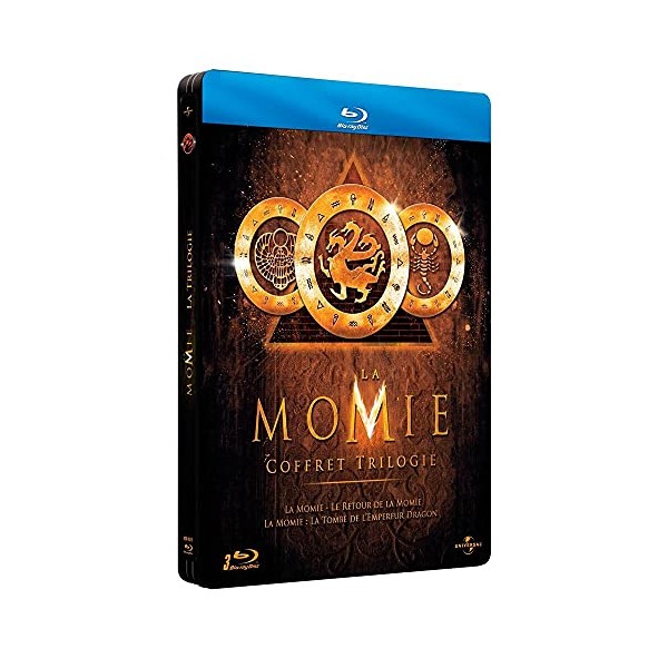 | Boîtier métal contenant : - "La Momie" - "Le Retour de la momie" - "La Momie - La tombe de l'empereur dragon" Blu-ray Disc 1 : 3 scènes coupées (2'21" - VOST) Commentaire audio de Stephen Sommers et Bob Ducsay (monteur) (VOST) Commentaire audio de Brendan Fraser (VOST) Commentaire audio des acteurs Oded Fehr, Kevin J. O'Connor et Arnold Voslo (VOST) "Aperçu de la Momie 3" (3'01" - VOST) "Création des effets visuels et effets spéciaux" : - La ville de Thèbes (38" + 3'30" + 55" + 44" - VOST) - L'enterrement du scarabée (13" + 26" + 12" + 14" - VOST) - De gros problèmes (7" + 37" + 4" + 15" - VOST) - Imhotep mange le scarabée (17" + 42" + 10" + 13" - VOST) - Rick vole au secours d'Evelyn (22" + 47" + 18" + 32" - VOST) "Une armée pour conquérir le monde, 1ère partie" (4'02" - VOST) "L'héritage de la momie" (8'07" - VOST) "Fabriquer une momie plus crédible" : making of (49'55" - VOST) 7 comparaison storyboard/film : - La chambre d'Anubis (1'40") - Tempête de sable dans le désert (1'59") - Le Sahara (1'53") - Combat final (49") - Le noeud du bourreau (1'45") - La course du scarabée (51") - Du rififi au Caire (1'05") Montage photos (4'18") Bande-annonce (2'19" - VOST) Option U-Control : "Mode incrustation" interviews et coulisses (15 modules - VOST) Blu-ray Disc 2 : Option "U-Control" (accès aux bonus en cours de visionnage) Commentaire audio de Stephen Sommers et Bob Ducsay (monteur) Blu-ray Disc 3 : 10 scènes coupées et versions longues (VOST - 10'45") Making of (HD - VOST - 22'49") "De la ville au désert" (HD - VOST - 15'44") "L'héritage de l'armée de terre cuite" (HD - VOST - 13'35") Commentaire audio de Rob Cohen (VOST) "Un appel à l'action : le choix de la distribution" (VOST - 4'44") "Les préparatifs de guerre avec Brendan Fraser et Jet Li" (VOST - 10'41") "Jet Li : la réalisation de l'empereur" (VOST - 8') "La création de mondes nouveaux et surnaturels" (VOST - 8'34") Option "U-Control" (accès aux bonus pendant le film - HD) : - Explorateur de scènes multi-angles (4 modules) - "Connaître la Momie" : liens entre les 3 films (14 modules en anglais uniquement) - "Le défi de l'empereur dragon" : quiz interactif (34 questions en anglais uniquement) - Version vidéo du ommentaire de Rob Cohen (VOST) - "Mode incrustation" : interviews et coulisses (VOST) Bonus exclusif BD Live : - "Saved by a Yeti" (module de tournage - VO - 5') |