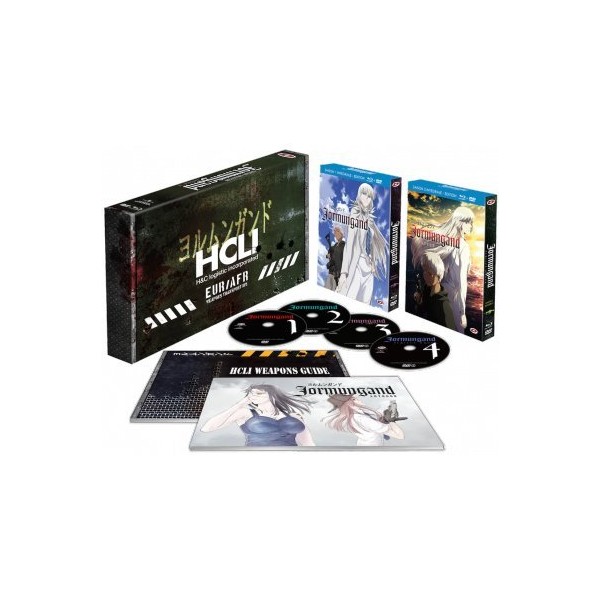 | Coffret collector en format A4 à tirage limité, avec : - la saison 1 (12 épisodes) en 2 Blu-ray - la saison 2 (12 épisodes) en 2 Blu-ray - "Jormungand Artbook", un livret géant d'illustrations (36) - "HCLI Weapons Guide", un livret géant du guide des armes (52 pages) |